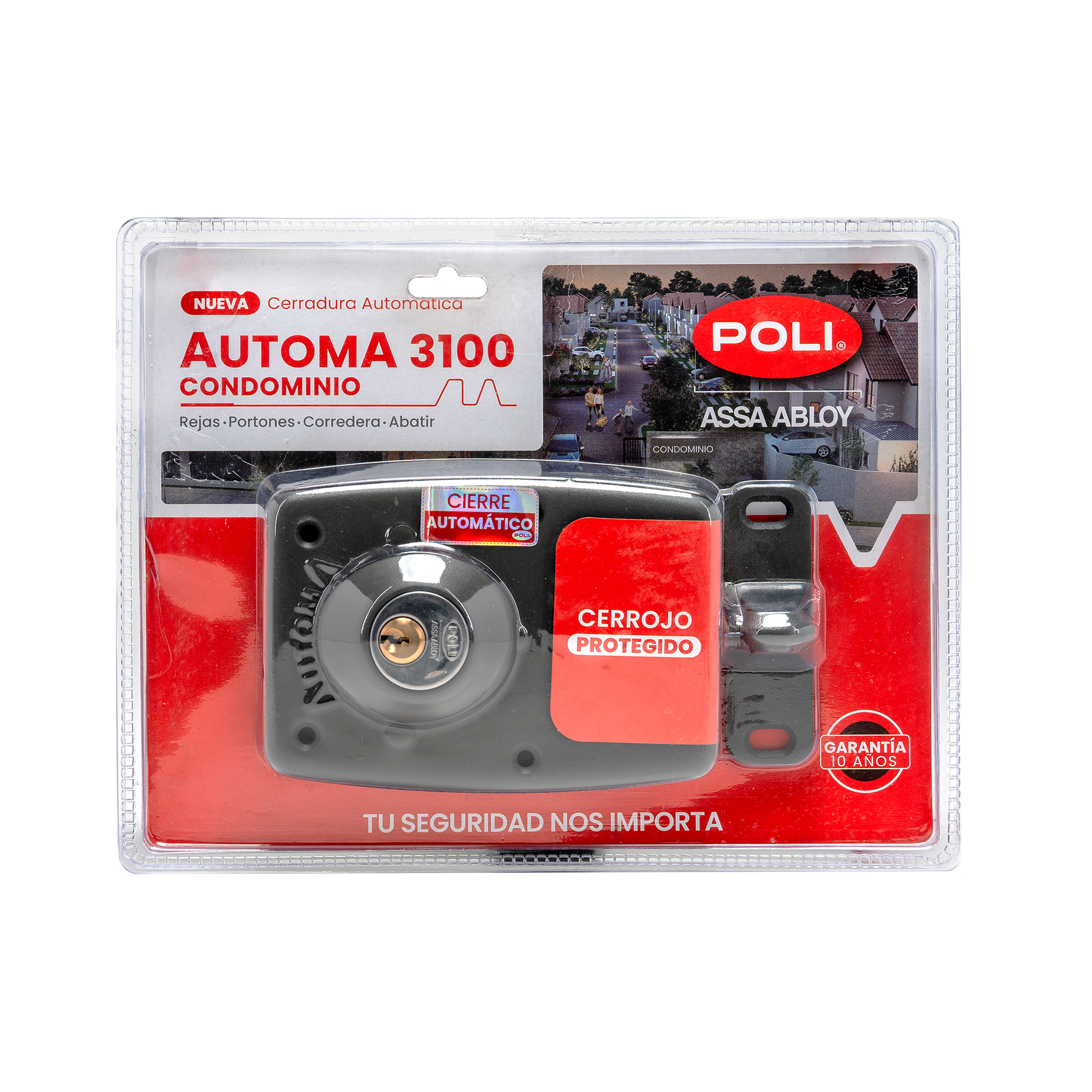 La cerradura sobreponer Poli AUTOMA 3100 está diseñada para brindar máxima protección en accesos como rejas, portones, puertas correderas y abatibles. Su cierre automático y cerrojo blindado ofrecen seguridad y tranquilidad en cada uso 🔑🚪.