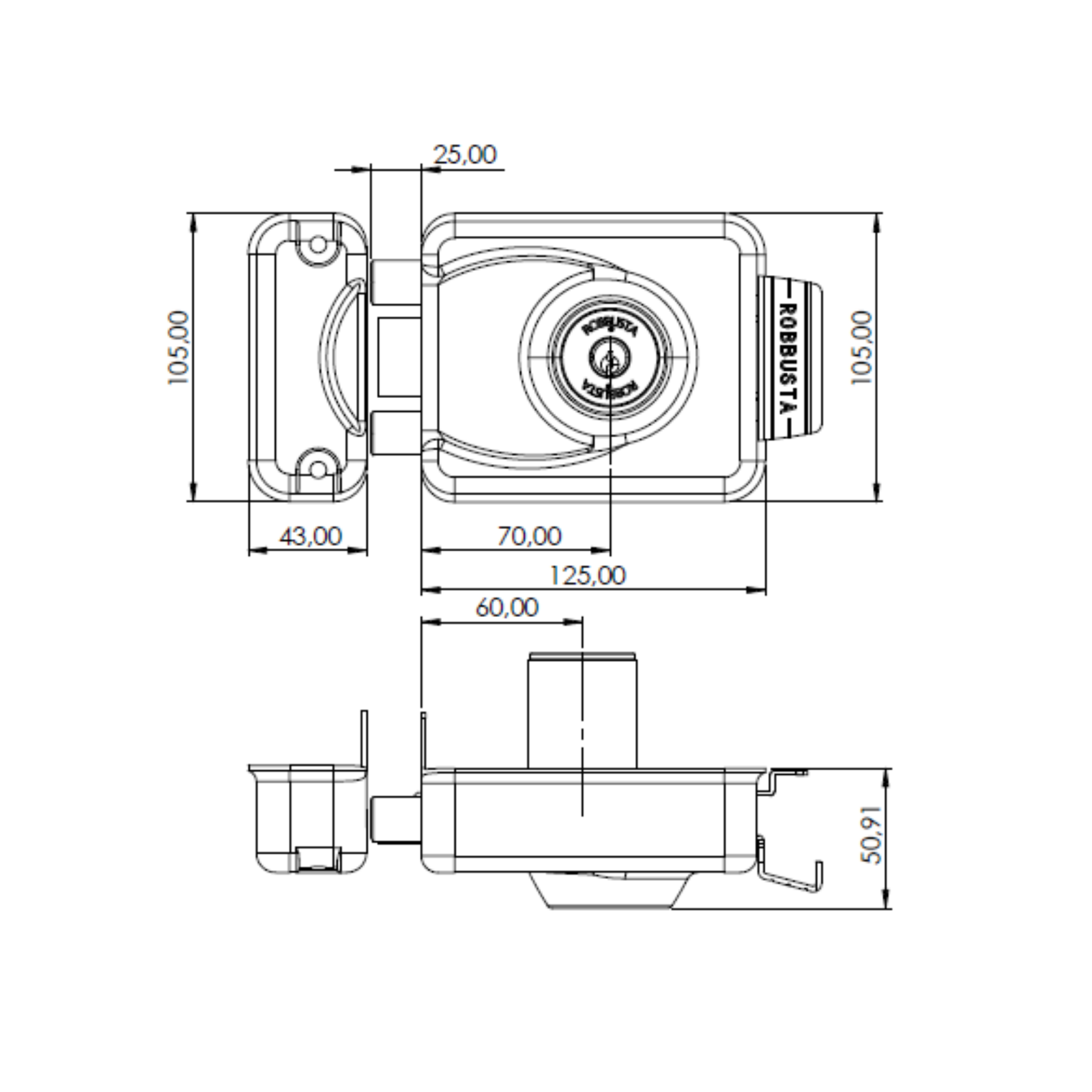 Cerradura Sobreponer Mecánica Poli Robbusta 7100 para Reja
